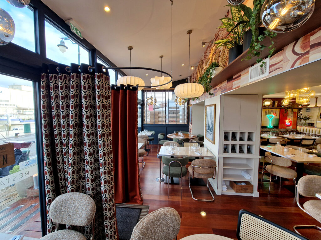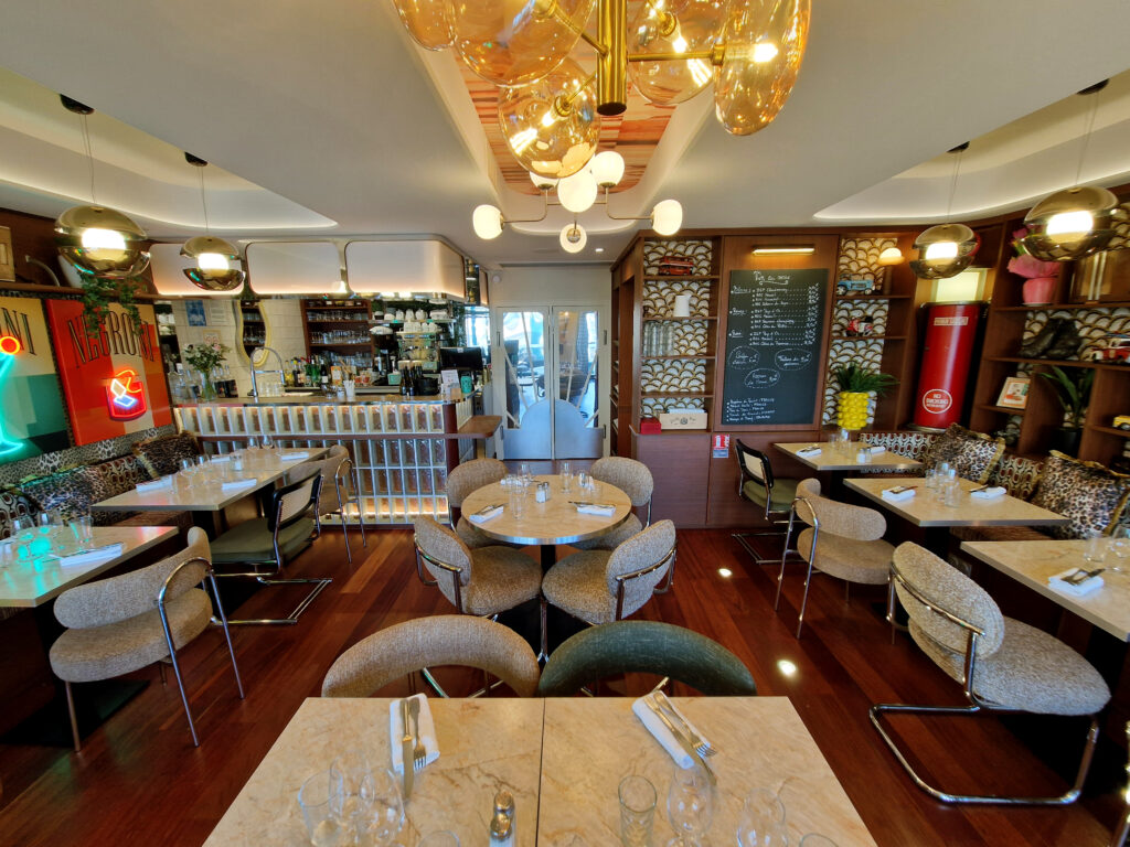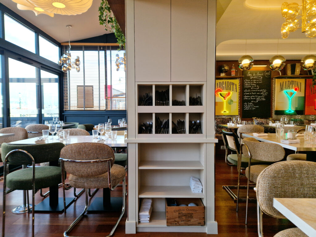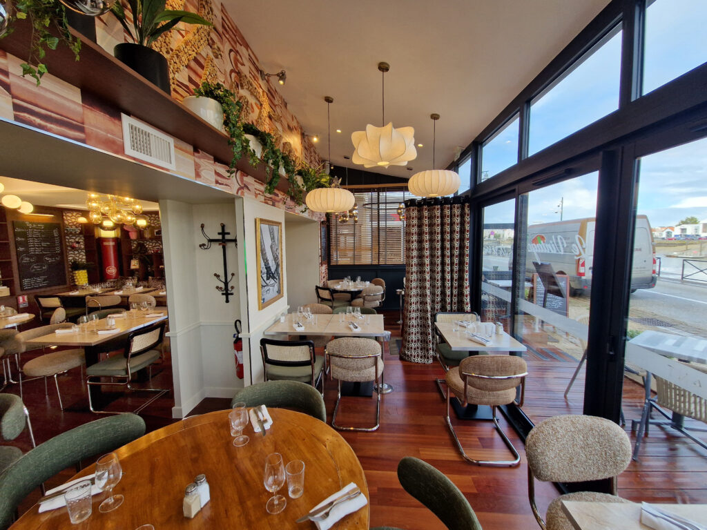 Kasia et Julien, gérants de l’établissement depuis 2017, ont sollicité Studio Vesta pour repenser intégralement leur restaurant. Idéalement situé sur le port des Sables-d’Olonne, le lieu nécessitait un second souffle pour se moderniser et, enfin, être en parfaite adéquation avec son nom : « Le Vintage ».