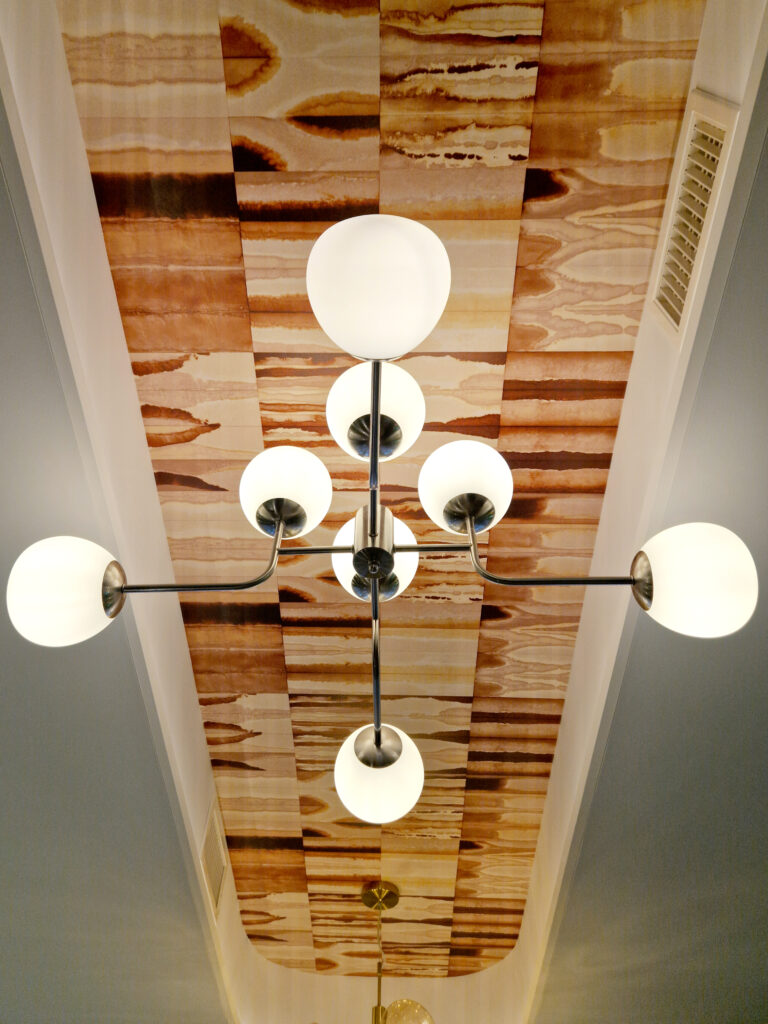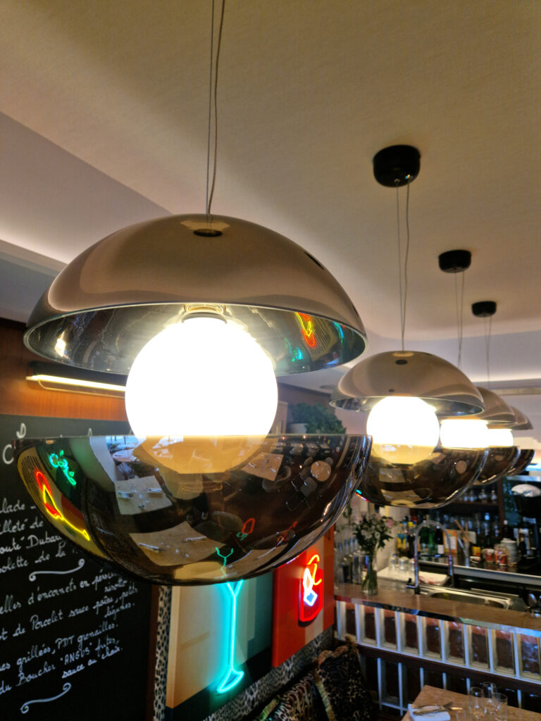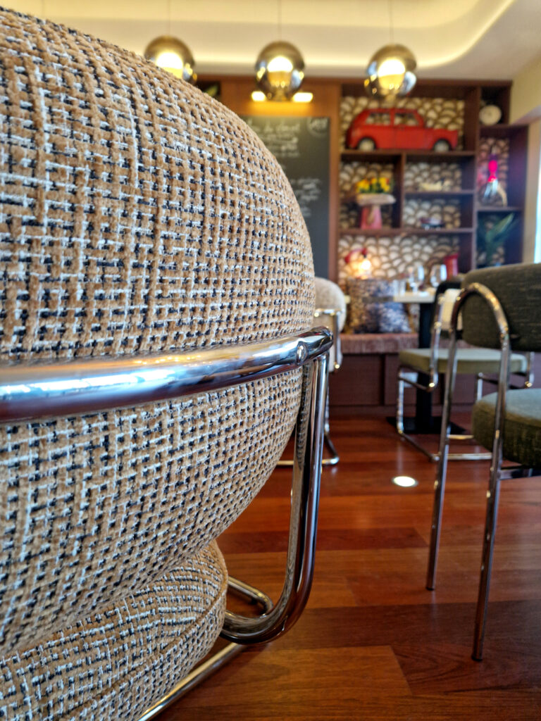 Le déclic stylistique est né de l’esthétique des années 70, inspiré notamment par les décors de la série « Les Petits Meurtres d’Agatha Christie ». Nous avons misé sur : Le bois foncé (faisant écho au parquet d’origine), les formes courbes et la rondeur des lignes, la profondeur des perspectives.